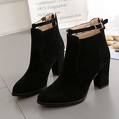 Alphahope Stivali piatti Stivaletti da donna con lacci Stivaletti con punta tonda Scarpe Invernali Pelliccia Boots Stivaletti con Zip Donna Stivaletti con punta tonda (Nero,41 EU)