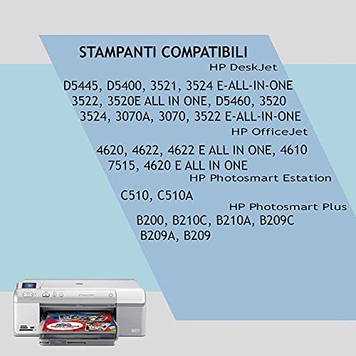 ✅ [Compatibilità stampante] Compatibili per Stampanti HP 3070, 3070A, D5445, D5460, D5463, D5468, 3520 e-AiO, 3522 ✔️Officejet 4620, 4622 ✔️AiO Photosmart B109A, B8550, C5300, C5324, C5370, 5373, C5380, C5383, C5388, C5390, C5393, C6300, C6324, C6350, C6380, C6383, C7380, D7500, D7560 ✔️Estation C510A, 7520 Photosmart Pro: B8500, B8550, B8553, B8558P