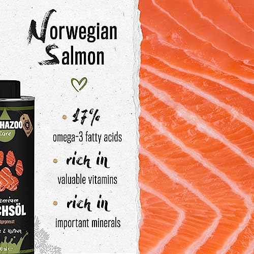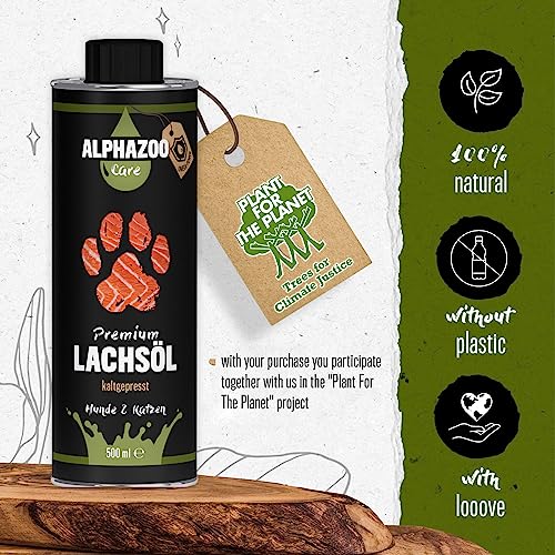 Alphazoo Olio di Salmone per Cani e Gatti 500 ml, Omega 3, Cura Pelle e Pelo, Spremuto a Freddo, Olio di Pesce per Cani