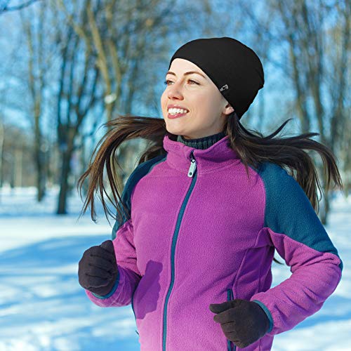 ALPIDEX Berretto Cotone Pile Cappello Morbido Caldo Invernale Bici Running Uomo Donna, Colore:Black