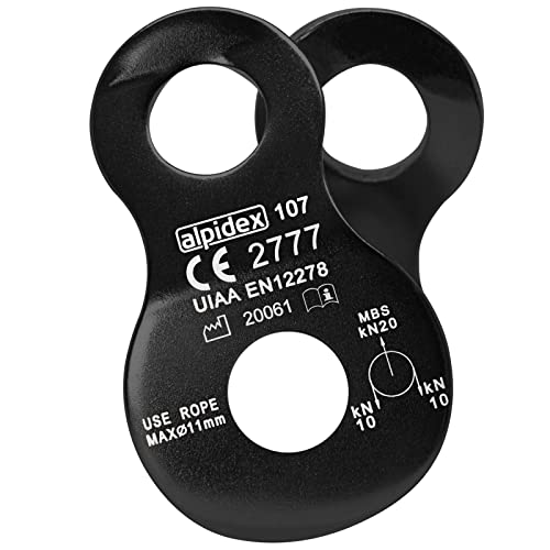 ALPIDEX Carrucola Puleggia 20 KN - Mobile Pulley Blocco Puleggia - per Corde con Un Diametro Fino A 11 mm - EN12278, Colore: Black