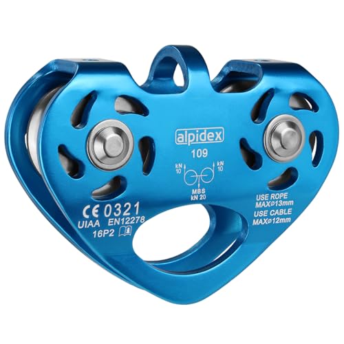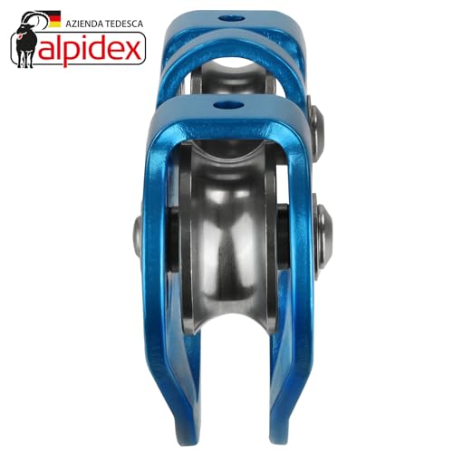 ALPIDEX Carrucola Tandem Pulley - Adatta a Corde di Tessuto con Un Fino a 13 mm e a Corde di Acciaio con Un Diametro Fino a 12 mm, Colore:Blu