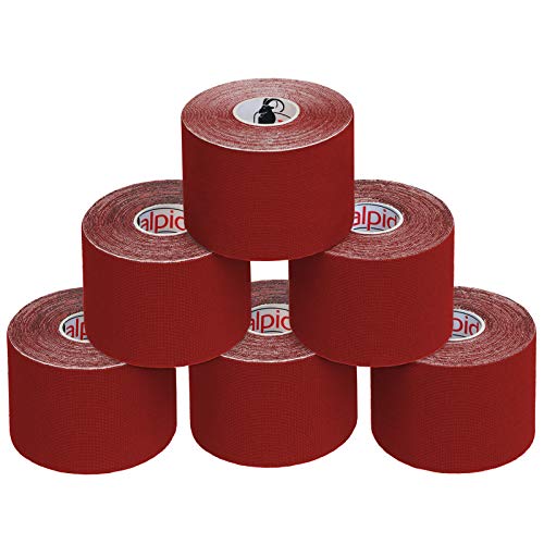 ALPIDEX Nastro Kinesiologico Tanti Colori 1/3/ 6/12 Rotoli 5 m x 5,0 cm E-Book Esempi Applicazione Tape Kinesiologico Muscolare Cerotto, Colore:rosso, Quantità:6 rotolo