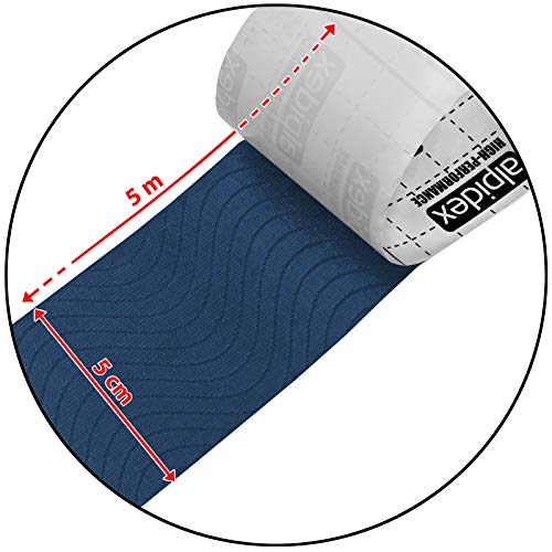 ALPIDEX 3 Rotoli Nastro Kinesiologico 5 m x 5,0 cm E-Book Esempi Applicazione Tape Kinesiologico Muscolare Cerotto, Colore:blu scuro