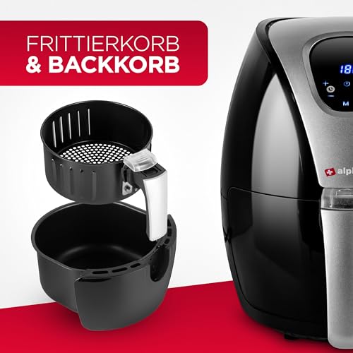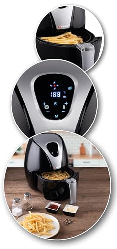 Alpina Friggitrice ad aria calda L - Friggitrice, grigliare, arrostire e friggere - fino all'80% di grassi in meno - 2-4 persone - 2,4 litri - Nero