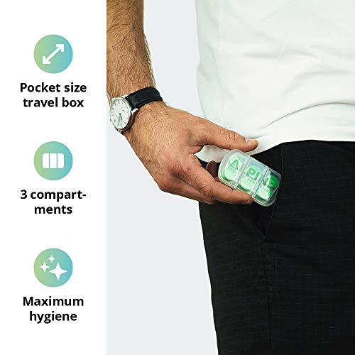 CONTENITORE CON COMPARTIMENTI: Separa i tuoi tappi usati da quelli nuovi! Facili da usare ovunque vai. Il compagno di viaggio ideale per gli hotel rumorosi e in piscina!