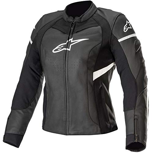 Alpinestars Giacca da moto Stella Kira Leather Jacket Black White, Nero/Bianco, 40