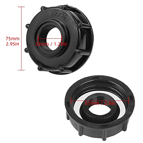 Alppihym Confezione da 2 Accessori per Adattatore Nero IBC - Tappo Adattatore, Filettatura Interna S60x6 3/4", Tappo Rubinetto, distanziatore, prolunga e Altro - per contenitori IBC