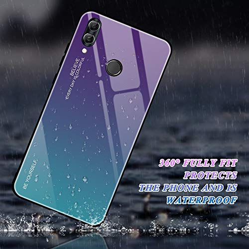 Alsoar Custodia Compatibile con Huawei P Smart 2019 Cover Completa Del Corpo,Custodia Antiurto in Silicone Ultra Sottile con Cover Posteriore in Vetro Temperato per Honor 10 lite (Aurora Blu)
