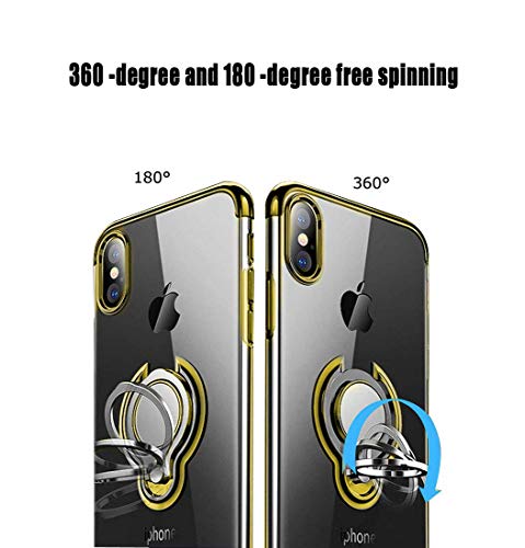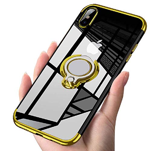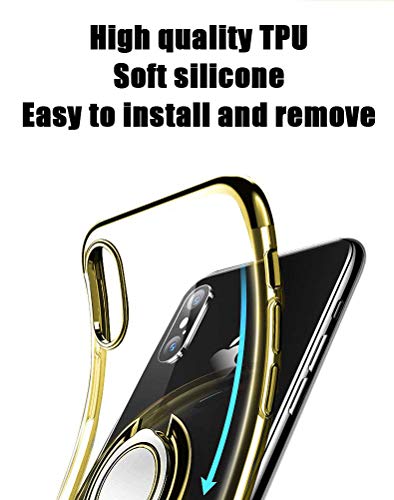 Alsoar Sottile Cover Compatibile per iPhone XR,Trasparente Silicone Custodia per iPhone XR con Girevole Fit TPU Morbido Anello,con Anello Supporto Adatto per Supporti Magnetici da Auto (d'oro)