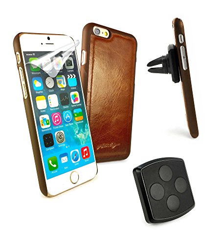 Alston Craig Slim Leather Shell Case & Magnetic Car Vent Mount for Apple iPhone 6/6S - Brown