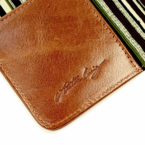 FEATURES: Beautiful aesthetic in prime hard-wearing materials - genuine vintage leather and our signature stripe material Covers phone in a slim protective bespoke cover, the envy of other phones. Easy to access the screen and take a call. Leather wallet cover, holds cards and doubles as a device protector, protective of the glasses on both all sides of your device. The Metal signature button and hardware in antique styling
