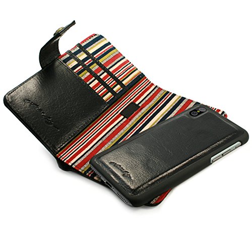 COMPATIBILITY: This beautiful handmade nero genuine Vintage leather case is compatible with Apple iPhone X / Xs. Will hold your credit cards / driving licence and cash notes under the card section. Includes PET film screen protection, to ensure your cards dont scratch your screen