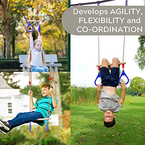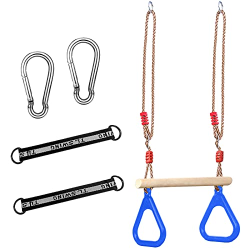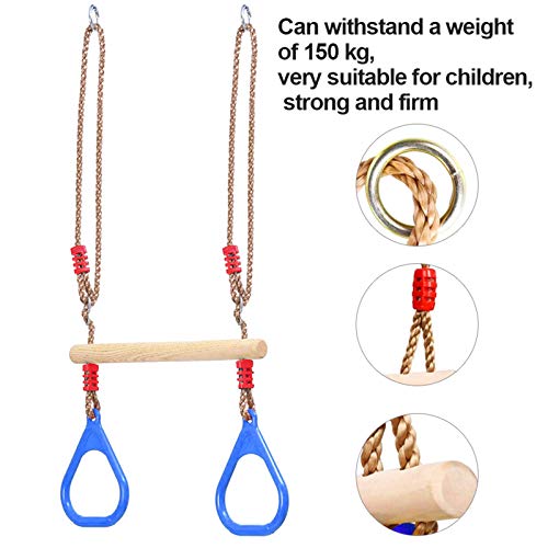 Altalena per bambini da interno,Anelli Ginnastica,Altalena con anelli,Altalena Multifunzionale,Legno con ginnastica,Multifunzione con Anelli in Legno,Trapezio Swing (Blu)