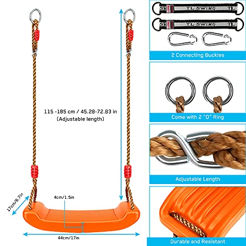 【Set da altalena per impieghi gravosi】 Il nostro set da altalena arancia include 1 sedile da altalena completo di funi in PE regolabili in altezza e 2 fibbie di collegamento, dimensioni confortevoli (17,32 x 6,7 x 1,57 pollici / 44 x 17 x 4 cm), facile da trasportare, durevole, di facile installazione e ampiamente utilizzato, è il miglior set da gioco per esterni e interni.