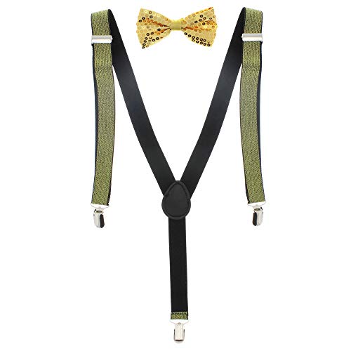 Zac's Alter Ego Bretelle abbinate da uomo e papillon pre-legati Set combo per cervo do's, Paillettes oro e glitter