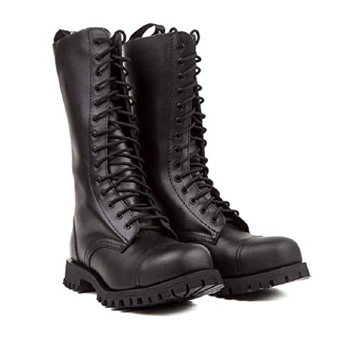 Altercore 552 Anfibi Stivali Militari Nero Pelle Unisex Donna Uomo 14 Buchi metà Polpaccio Army Punk Punta di Ferro Ranger