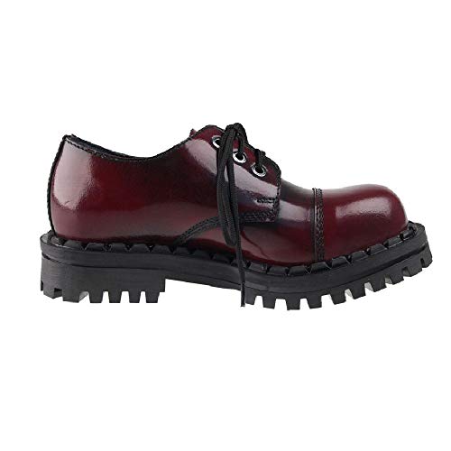 Altercore Scarpe Punk Militari Pelle Rosso Bordeaux Slavato Unisex Donna Uomo 3 Buchi Army Punta di Ferro Ranger