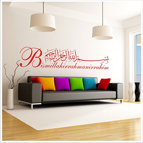 Alternif - Adesivo da parete Besmele XXL misura Islam Allah Bismillah Adesivo Arabico, Turchia Istanbul + istruzioni per l'applicazione originale Besmele-11 (120 cm x 28 cm, rosso)