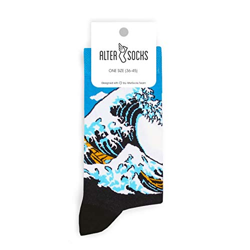 Altersocks Uomo La Grande Onda Socks, Blu E Nero, 36 45, Blu e nero, Taglia unica