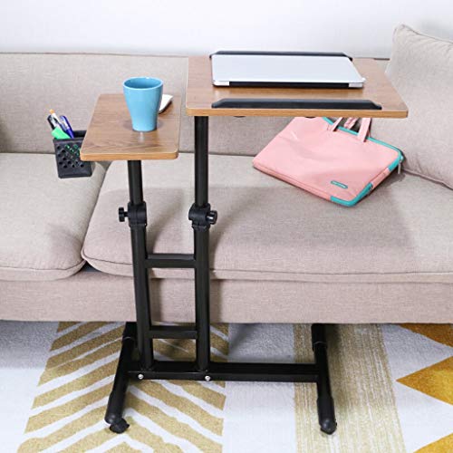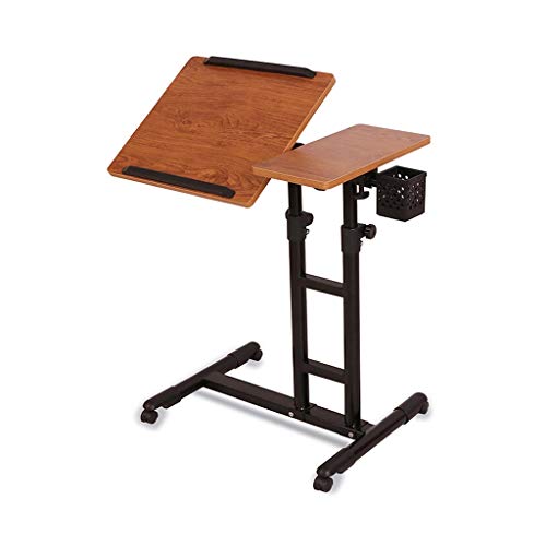 CYLQ Altezza Regolabile Tavolo del Portatile, Mobile Computer Postazione di Lavoro, Ruota E Inclina Il Pannello Diviso Supporto Capezzale Casa Scrivania per Il Vassoio, Marrone 60-95Cm