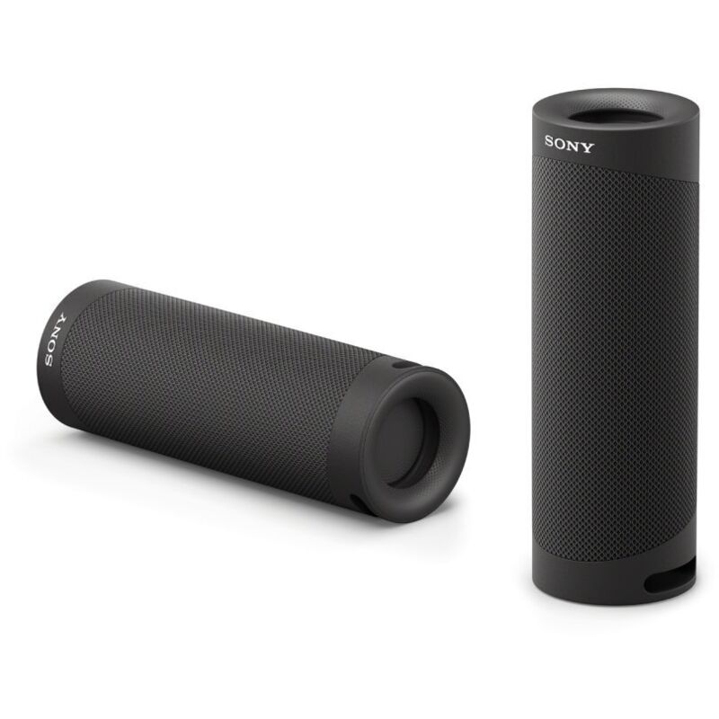 Altoparlante portatile Bluetooth Extra Bass Sony SRSXB23B. Con la tecnologia EXTRA BASS, bastano pochi secondi di ascolto per iniziare a goderti la potenza e l'impressionante profondità dei bassi. Il suono è ricco e avvolgente grazie alla tecnologia Stereo. L'SRSXB23B ti seguirà dove vuoi e per molto tempo! Il suo formato ultraportatile, molto simile a quello di una bottiglia da 750ml, ti permetterà di infilarlo nello zaino, nel portaborraccia della tua bici o appenderlo ovunque grazie al suo cinturino (incluso). La sua batteria da 2700 mAh gli consente di accompagnare la maggior parte dei frequentatori di feste fino a 12 ore di seguito! L'SRSXB23B è un vero avventuriero, la sua certificazione IP67 e la sua resistenza alle cadute (1,2 m max) attestano che rimarrà operativo dopo avervi tenuto compagnia in spiaggia, in montagna, nella foresta o anche nel deserto! Riunisci i tuoi amici e i tuoi altoparlanti EXTRA BASS per migliorare la spazializzazione e aumentare di dieci volte il