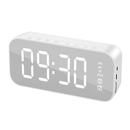 Altoparlante Bluetooth LED Schermo a specchio Screen Orologi per telefoni cellulari Subwoofer Orologio da tavolo Digital Clock Clock Sveglia MP3 TF FM AUX (Color: White)