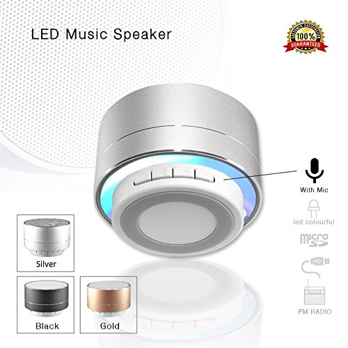 Mini altoparlante portatile Bluetooth 4.0 con luce e microfono per iPhone/iPad/iPod/Samsung Tablet Smartphone/Laptop PC nachlad Bar per all' aperto/casa/gioco spazio in alluminio di metallo in oro nero Schwarzen