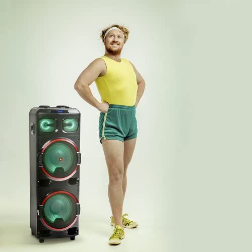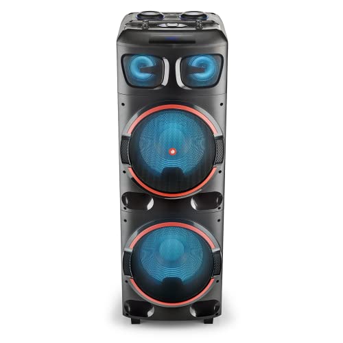 Potente ed enorme stereo DJ ad alta potenza per godersi la festa a tutto volume, con 800 W di potenza massima, doppio woofer da 12" e doppio tweeter da 4".