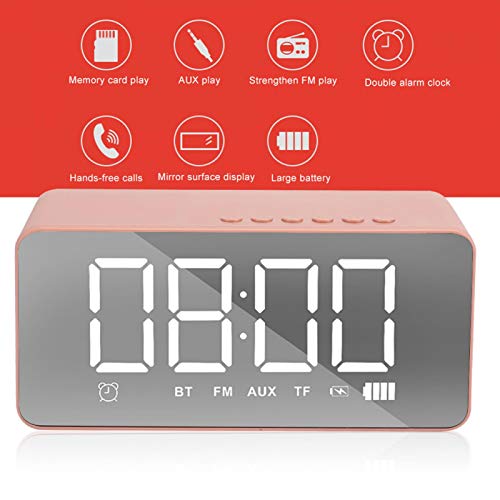 Altoparlante Sveglia, Mini sveglia 3D ad alto volume Altoparlante Bluetooth 5.0 senza fili, Display a specchio HD, Sveglia digitale con radio FM, per computer con telefono cellulare(Rosa Rosa)