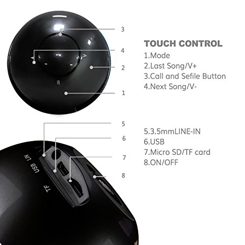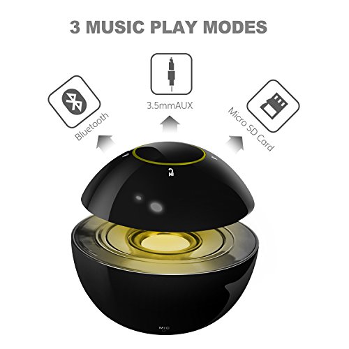 Mini Altoparlanti Bluetooth wireless Sound Box Musicbox con Tasto di tocco E Luci a LED Cambiamento di colore,Microfono incorporato e Supporto Micro SD Card Gioca per i telefoni PC Computer- Nero