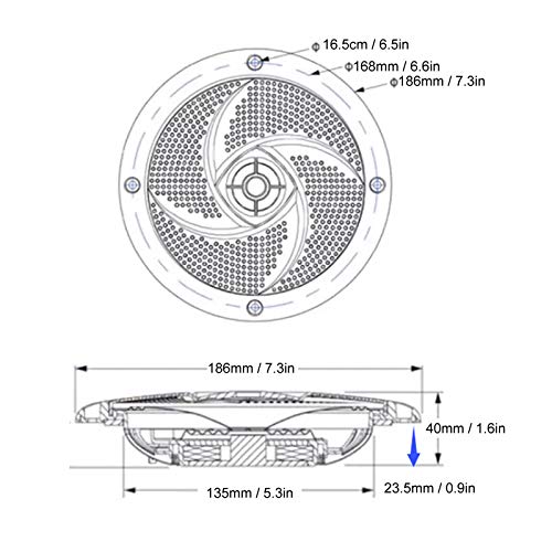★★ 【DIMENSIONE STANDARD 6,5 "】 ★★ Questi altoparlanti marini sono facili da installare con dimensioni standard da 6,5 pollici, cablaggi completi e hardware di montaggio. Ha una dimensione di ricambio OEM standard universale con una profondità di montaggio di soli 2,48 "e una dimensione di ritaglio di 5,31". I contatti sono facili da cablare e resistenti alla corrosione, la struttura a rete è più stabile, la forma complessiva è più bella, e un cavo di 3 metri è attaccato.