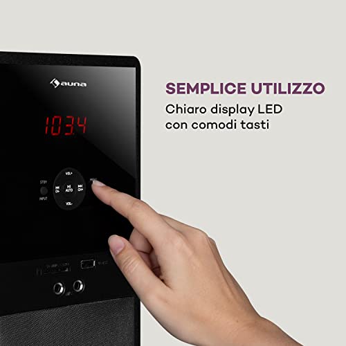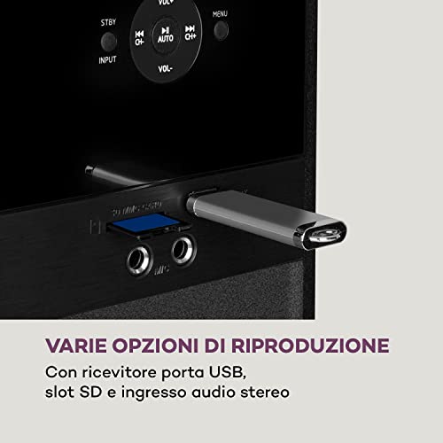 OPZIONI DI RIPRODUZIONE VERSATILI: Porta USB, slot SD e ingresso audio stereo. Semplicità di utilizzo: grazie al display a LED con pulsanti a scorrimento fluido.