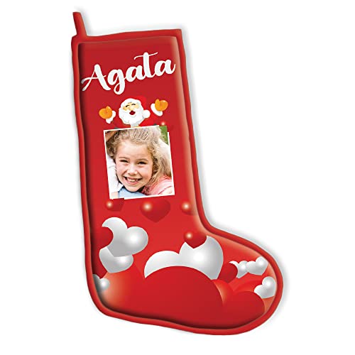 Altra Marca Calza della Befana Personalizzata Porta Regali Cuori e Babbo con Nome e Foto per Natale ed Epifania
