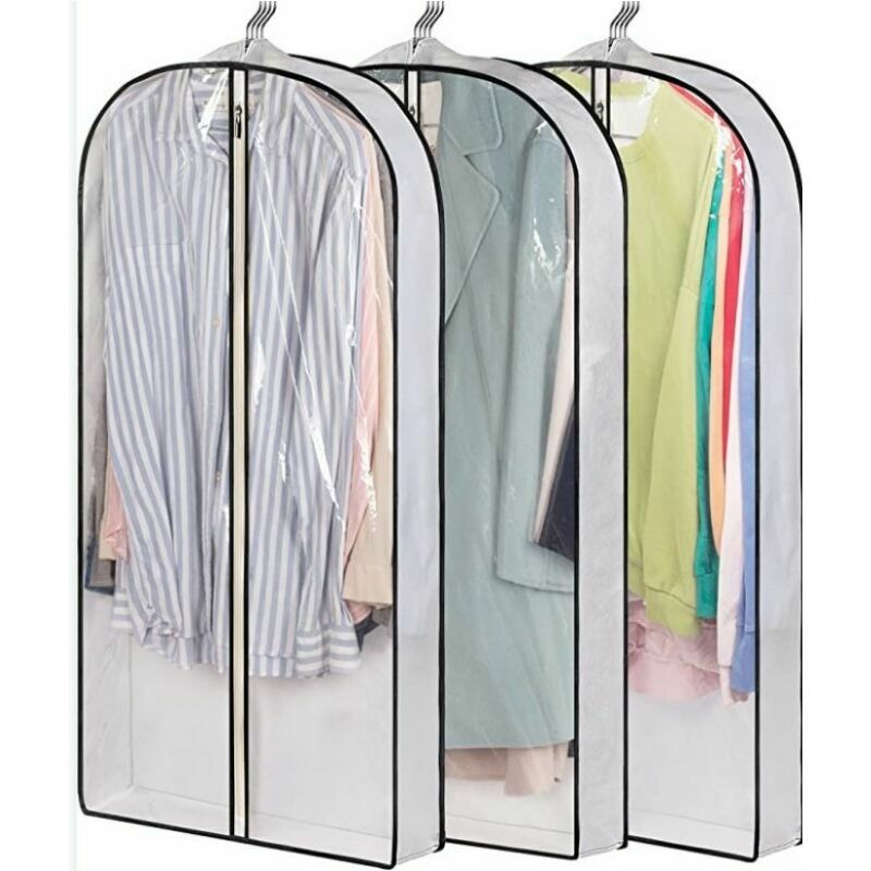 Tessuto traspirante inodore + EVA trasparente - Il lato anteriore è realizzato in EVA trasparente inodore e sicuro, che ti consente di vedere facilmente il contenuto di ogni porta abiti e ti aiuta a trovare rapidamente i vestiti di cui hai bisogno. La parte posteriore della borsa porta abiti è realizzata in tessuto non tessuto traspirante, leggero e abbastanza resistente da proteggere i vestiti dalla polvere. Materiale resistente che può essere facilmente piegato e ripiegato senza crepe.,Grande capacità: ogni borsa sospesa ha spazio sufficiente per 16 camicie o 10 maglioni o 6 giacche invernali. La lunghezza è adatta per riporre abiti, giacche, abiti alla caviglia, maglioni, cappotti invernali, vestiti e altro ancora. Dimensioni: 60 (L) x 100 (A) x 10 (L) cm. [Cerniera liscia e foro superiore] La robusta cerniera liscia n. 5 della borsa porta abiti da viaggio si chiude completamente per proteggere i vestiti all'interno. Perfetto per l'uso quotidiano e non facilmente danneggiato. Il