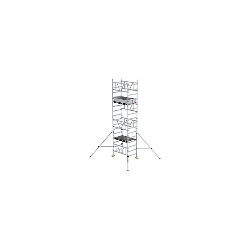 Trabattello a montaggio rapido MiTOWER Standard, piattaforma in Fiber-Deck®, lungh. x largh. 1200 x 750 mm, altezza di lavoro 5 m. Fornitura = in parte smontato. Lunghezza piattaforma = 1200 mm. Altezza di lavoro = 5 m. Peso = 99 kg. Materiale = alluminio, Fiber-Deck®. Portata = 150 kg. Dotazione ruote = rotella pivottante con fermo doppio. Diametro ruote = 125 mm. Larghezza trabattello = 0.75 m. Lunghezza trabattello = 1.20 m. Norma = EN 1004. Tipo di prodotto = trabattelli montabili da una persona. Con piattaforma Fiber-Deck® particolarmente leggera. Facili - montabili e smontabili da una persona. Veloci - montaggio e smontaggio in massimo 10 minuti. Comodi - i componenti del trabattello si trasformano in un pratico carrello. Bastano poche mosse per raggiungere l'altezza desiderata. Il trabattello mobile MiTOWER può essere montato e smontato in massimo 10 minuti da una sola persona. Le traverse e l'eccezionale meccanismo di sospensione nelle singole piattaforme offrono all'utente
