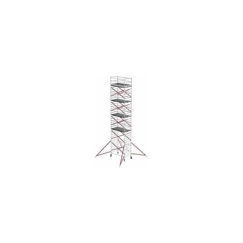 Trabattello mobile RS TOWER 55, piattaforma in legno, lunghezza 1,85 m, altezza di lavoro 11,80 m. Fornitura = smontato. Larghezza piattaforma = 1350 mm. Altezza piattaforma = 9800 mm. Lunghezza piattaforma = 1850 mm. Altezza di lavoro = 11.8 m. Altezza di salita = 9800 mm. Altezza trabattello = 10.8 m. Peso = 382 kg. Materiale = alluminio, legno. Portata = 250 - 750 kg. Diametro ruote = 200 mm. Larghezza trabattello = 1.35 m. Lunghezza trabattello = 1.9 m. Diametro tubo = 50 mm. Norma = EN 1004 classe 3. Tipo di prodotto = trabattelli mobili, trabattelli per interni. Salvaspazio - piegabile a metà. Un pratico aiuto - ampliabile fino a un'altezza di lavoro di 13,80 m. Montaggio e smontaggio più rapidi con l'innovativo sistema di ganci della piattaforma. RS TOWER 55 è un pratico trabattello con grande superficie di lavoro adatto per l'uso in interni ed esterni. Serve un'altezza maggiore? Il sistema è ampliabile con i componenti della serie RS TOWER 5, che permettono di ampliare il