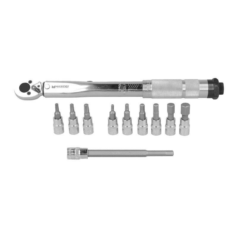 Chiave dinamometrica 1/4 serraggio 5-25 nm 10pz chiave dinamometrica da 1/4 lunghezza: 26,5cm set 10 pezzi serraggio: 5-25 nm impugnatura con regolazione di coppia materiale inserti: acciaio 50bv30 misure chiavi a bussola: h3 h4 h5 h6 h8 h10 misure inserti torx: t20 t25 t30 perno d'innesto da 1/4 h5mm x 100mm materiale: acciaio al carbonio custodia in plastica nera