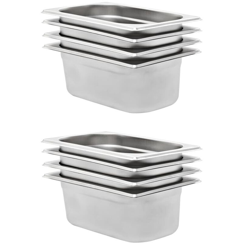 Questi contenitori Gastronorm impilabili saranno un'ottima aggiunta ai vostri accessori da cucina. Realizzata in acciaio inossidabile e robusto, la teglia da cucina a vapore ha una costruzione solida ed è facile da pulire. Il materiale resistente evita i graffi e facilita la manutenzione. La teglia per alimenti ha le dimensioni standard dei formati Gastronorm, consentendo così un uso universale e un ampio campo di combinazioni. In particolare si adatta perfettamente a tutti gli elettrodomestici da cucina e le attrezzature professionali come bagnomaria, scaldavivande e buffet di insalate. Questi contenitori sono impilabili e possono essere nascosti per risparmiare spazio, inoltre sono molto pratici e ideali per l'utilizzo in ristoranti, alberghi, feste e a casa. La consegna include 8 contenitori per alimenti. Colore: Argento GN 1/4 Dimensioni: 265 x 162 x 100 mm (L x P x A) Materiale: Acciaio inossidabile Volume massimo: 2,8 L La consegna include 8 contenitori per alimenti SKU: 50902