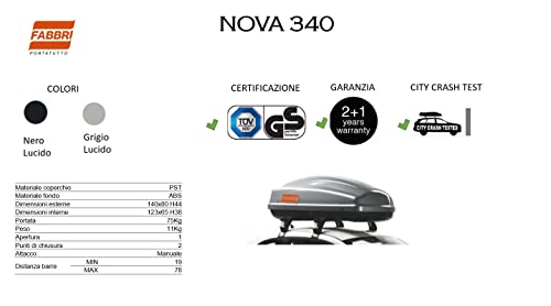 Altro modula Box da Tetto Baule Portatutto (Nero, Nova 340LT)