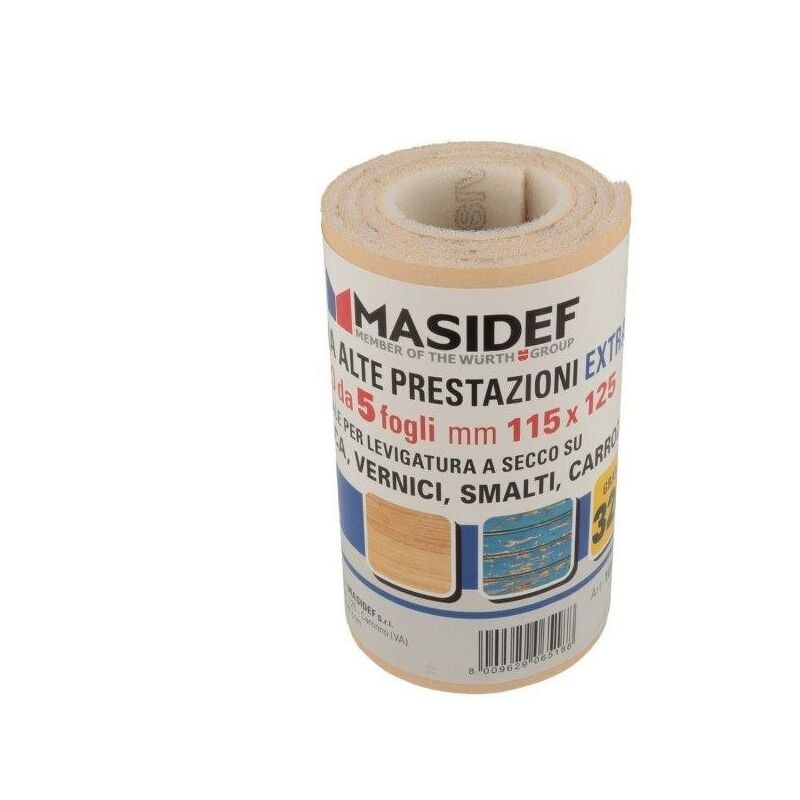 Rotolo spugna abrasiva alte prestazioni 5 fogli grana 320 ad alte prestazioni 5 fogli da 115 x 125 mm. grana 320 extra flessibile, per levigatura a secco su legno morbido e duro, plastica, vernici, smalti, adatti anche per carrozzeria made in italy non contiene additivi chimici dannosi a persone ed ambiente