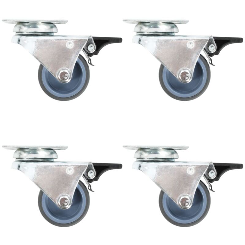 Questo set di 12 ruote girevoli gemellate metà dotate di freno, sarà l'accessorio perfetto per attrezzature e mobili di piccole dimensioni come banchi da lavoro, carrelli, tavolini da caffè, piantane, scaffali, carrelli della spesa, ecc. Le ruote sono realizzate in TPR (gomma termoplastica) che si distingue per una buona resistenza agli urti e alle vibrazioni, consentendo a queste ruote di girare silenziosamente e senza problemi. La loro superficie morbida inoltre, protegge efficacemente il pavimento dai graffi. La struttura in ferro zincato è altamente resistente alla ruggine, garantendo pertanto maggiore robustezza e la durata alle ruote. Metà delle ruote gemellate inoltre, sono dotate di sistema frenante per garantire una maggiore flessibilità di utilizzo. Ogni ruota gemellata possiede una capacità di carico massima di 100 kg. La consegna include 12 ruote girevoli, metà con freno. Colore: Grigio Materiale: TPR (gomma termoplastica) e ferro zincato Diametro della ruota: 50 mm