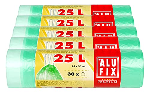 ALUFIX Sacchi della spazzatura con cordoncino, 25 l, HDPE, 45 x 50 cm, 12 my, verde trasparente, 150 pezzi