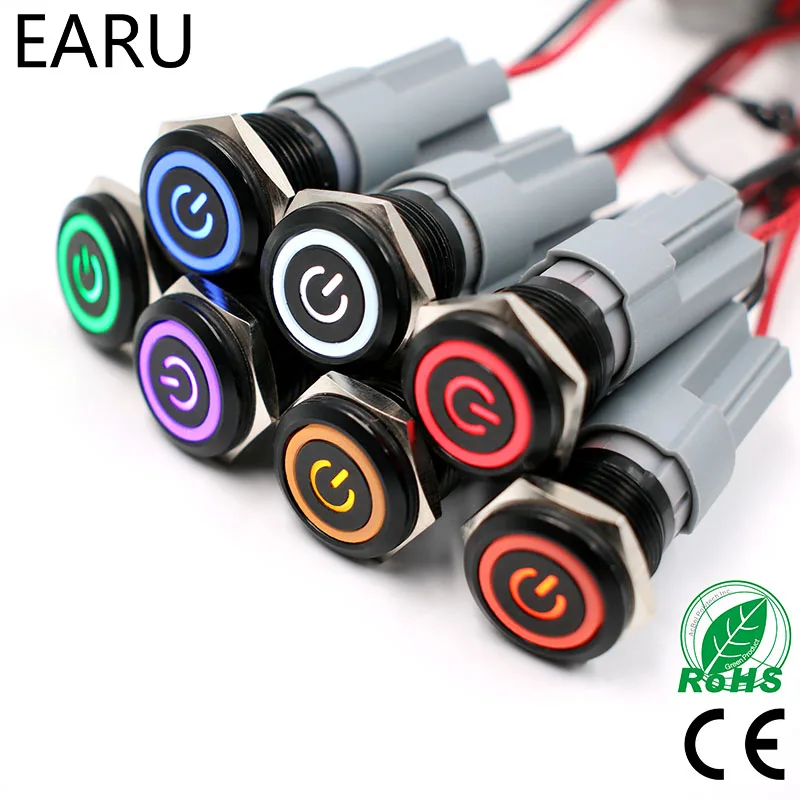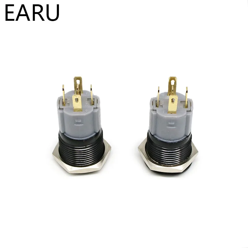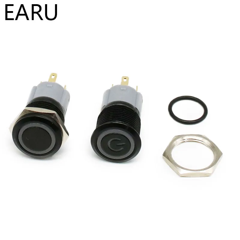 16mm Alumina Black LED Light Waterproof Metal Push Button Switch Latching Momentary Fixation LED Light 3-380V 24V Red Blue Green