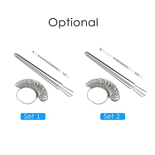 3 pezzi set includes 1 Ring Sizer Mandrel, 1 Ring Sizer Gauge and 1 Tape, useful tools for quickly figurure out the sizes of rings and fingers.
