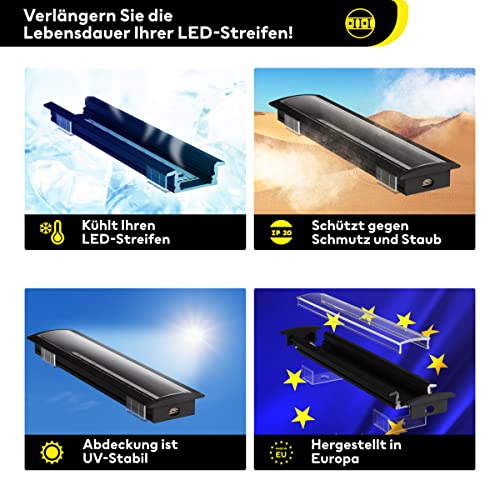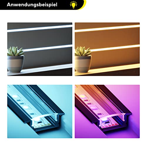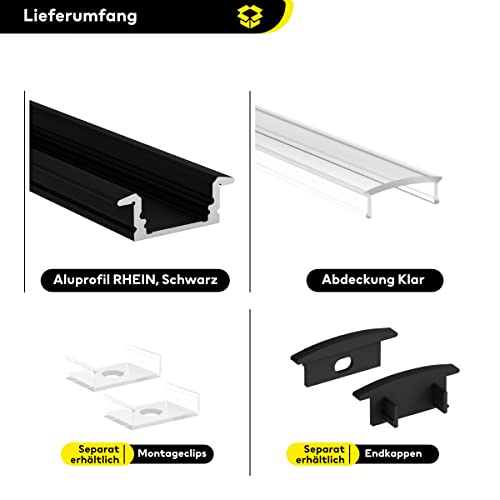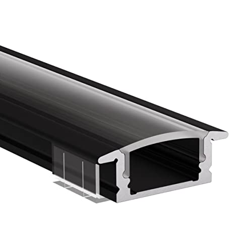 Alumino Profilo in alluminio a LED nero, 50 cm, profilo da incasso, copertura trasparente, per strisce LED da 12 mm, Reno
