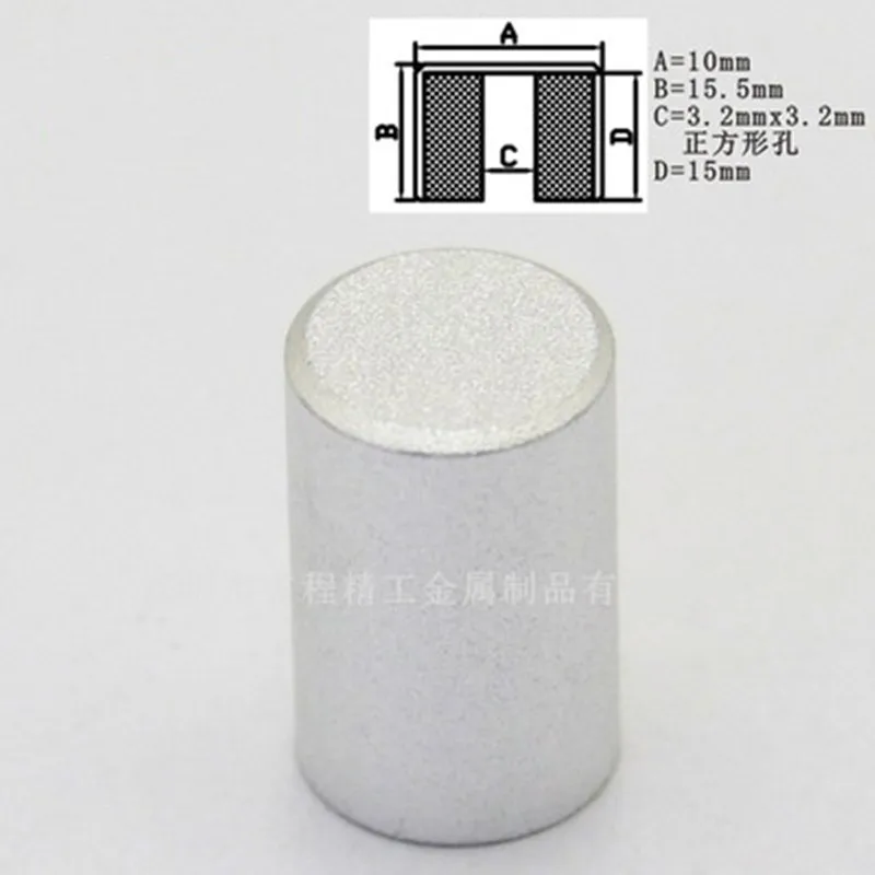 Aluminum alloy silver sandblasting button cap diameter 10mm high 15.5mm square hole 3.2 * 3.2mm power switch button cap