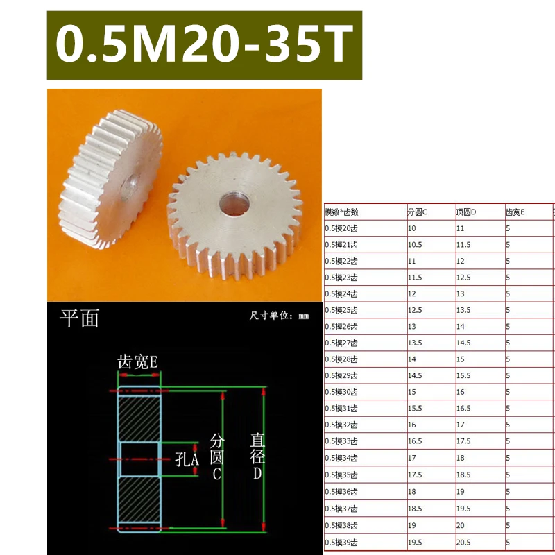 0.5mod flat aluminum alloy 0.5 die 20T 21T 22T 23T 24T 25T 26T to 35 teeth metal precision small modulus cylindrical spur gear