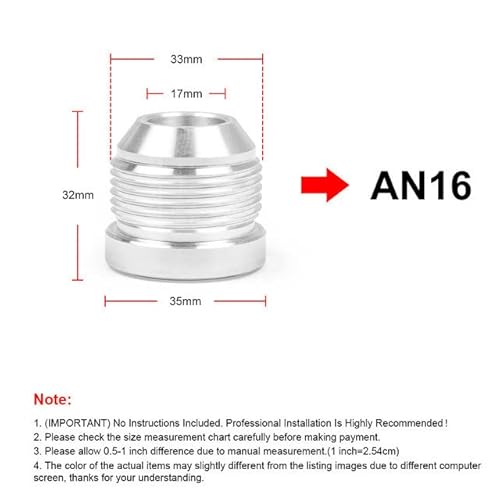 Aluminum Nitrous Hose Fitting Male Billet AN6 AN8 AN10 AN12 AN16 AN20 Straight Male Weld Fitting Adapter Weld Bung (Color: AN16)