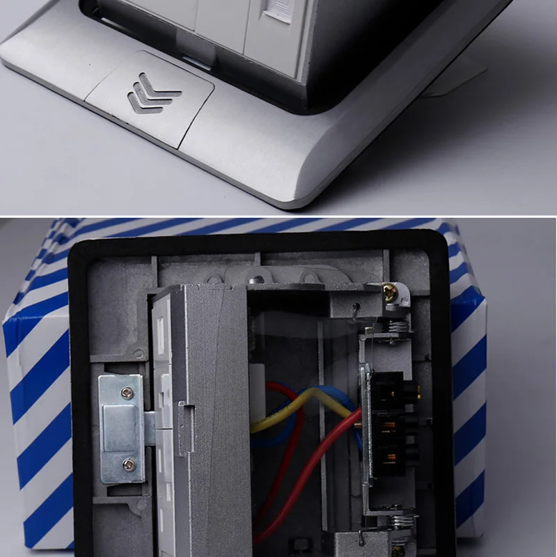 KEKA All Aluminum Silver Panel Pop Up Table Floor Socket 16A Russia Spain EU Standard Power socket 2 Way Electrical Outlet